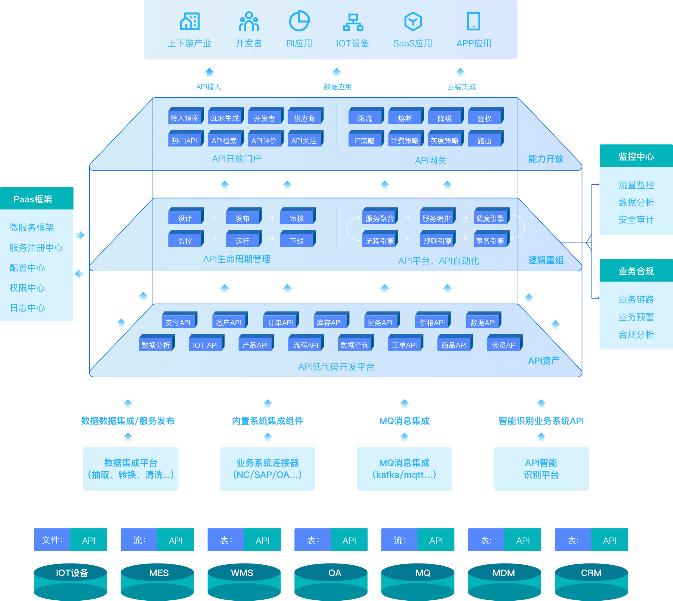 全面梳理和管控所有API服务,构建API能力运营平台、提升API复用率支撑业务快速集成、高效创新。