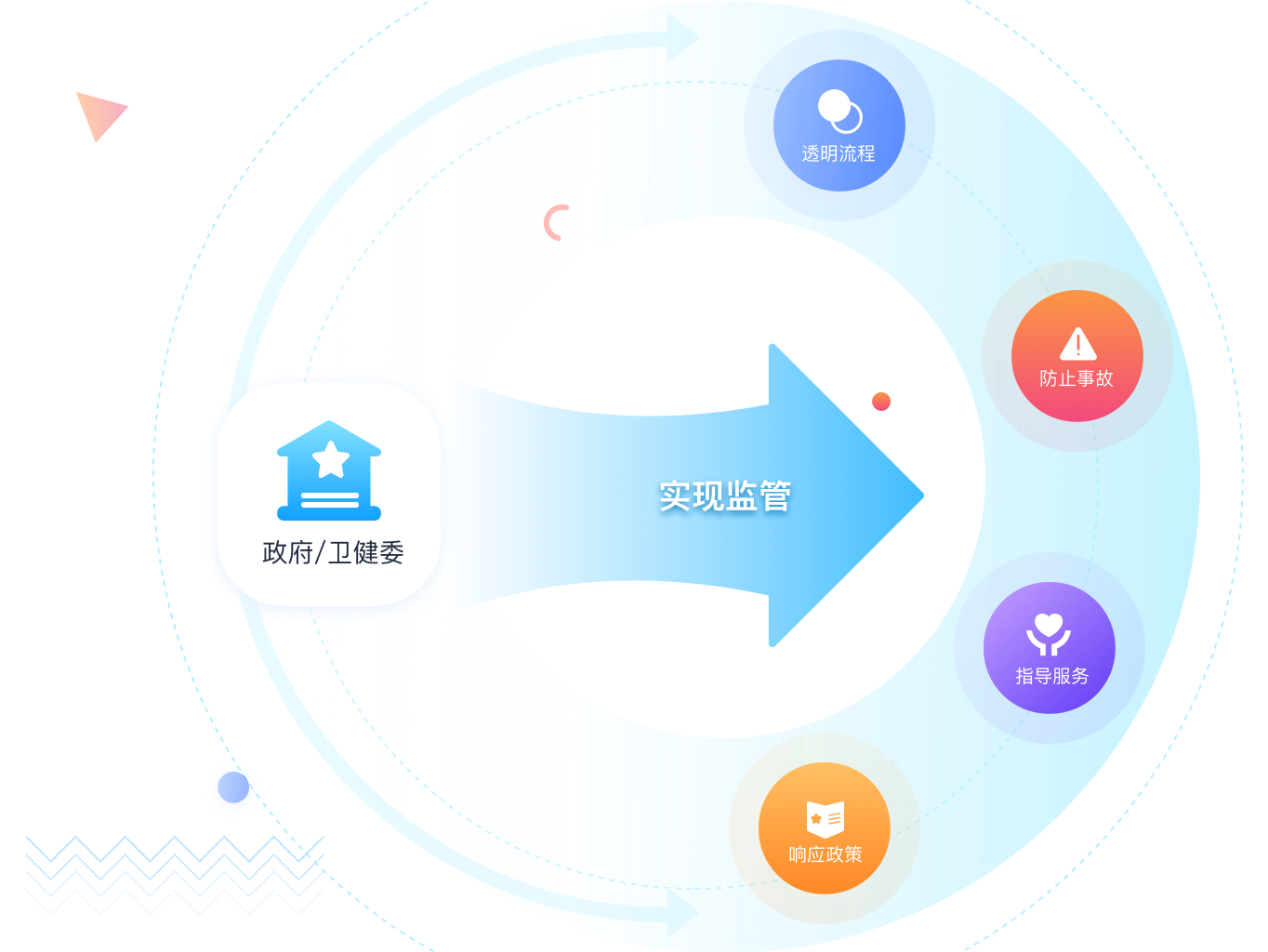 诊所的经营行为必然会接入政府和卫健委等机构实现监管,帮助诊所透明诊疗流程,防止医疗事故发生。帮助诊所实现业务合规和政策的及时响应,让监管机构参与指导诊所的业务服务。